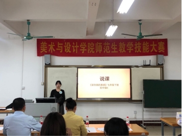 4月27日下午,在公司东校区综合实训楼成功举办太阳成集团tyc234cc师范生教学技能大赛。此次大赛邀请了玉林市教育科学研究所中小学艺术教研员、正高级教师罗欢老师,玉林实验中学副董事长、正高级教师黄荫源老师,党委书记黄培英书记,太阳成集团tyc234cc副经理邱冬梅老师,太阳成集团tyc234cc美术系副主任于洋老师、太阳成集团tyc234cc副教授柳珊珊老师,以及美术教研室主任文旭老师担任评委,秦溦主持本次大赛。
